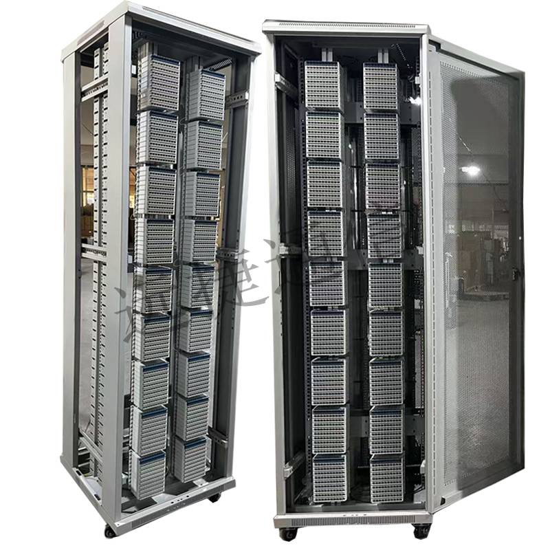 综合配线柜网络机柜理线架网络配线架出售 综合配线柜 满配19英寸42U47U加厚MDF总配线架安装方便 扩展横梁:于TOPER1800系列和TOPERServer系列机柜使用的装置,用于扩展机柜内的安装空间之用。安装和拆卸非常方便。同时也可以配合理线架、配电单元的安装。形式灵活多样。安装螺母(方螺母):适用于任意一款TOPER系列机柜,用于机柜内的所有设备的安装,包括机柜的大部分配件的安装。键盘托架:用于安装标准计算机键盘,可配合市面上所有规格的计算机键盘;可翻折90度。键盘托架必须配合滑动托盘使用。调速风机单元:安装于机柜的顶部,可根据环境温度和设备温度调节风扇的转速,有效地降低了机房的噪音。调速方式:手动,无级调速。机架式风机单元:高度为1U,可安装在19"标准机柜内的任意高度位置上,可根据机柜内热源酌情配置。 孔前门:机柜前门全部为?3的圆孔,提高了机柜的散热性能和屏蔽性能。高度可配合:2.0米机柜、1.8米机柜、1.6米机柜。网络机柜囊括服务器机柜,也是用来组合安装面板、插件、插箱、电子元件、器件和机械零件与部件,使其构成一个整体的安装箱。网络机柜主要是布线工程上用的,存放路由器交换机显示器配丝架等等的东西,工程上用的比较多.一般情况下:网络机柜的深小于等于800mm,而服务器机柜的深大于等于800mm。网络机柜应便于生产、组装、调试和包装运输。服务器机柜应合乎标准化、规格化、系列化的要求。机柜造型美观、适用、色彩协调。机柜的局部过热可以通过加装散热单元,增加风的流速和流量;也可通过在本柜内加装制冷设备;