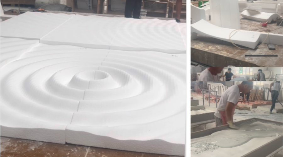 二、工艺突破实现复杂造型针对波浪形曲面的几何复杂性,饰纪上品采用"数字建模-CNC雕刻-弹性基层处理"的创新工艺链。首先通过BIM技术建立1:1三维模型,将曲面分解为1200mm×2400mm标准模块;随后使用五轴加工中心雕刻高精度模具,误差控制在±0.3mm以内;现场安装时采用弹性基层处理技术,通过可调节钢龙骨系统实现模块间的无缝拼接,最终形成连续流畅的波浪曲面。 在防火安全方面,GRG材料通过A1级不燃认证,遇火时释放自身重量15%-20%的结晶水,有效降低火场温度。云璟酒店项目特别采用纳米级密封涂层处理,使材料表面孔隙率进一步降低至3%以下,既满足手术室级无菌要求,又提升了抗污性能,日常清洁仅需清水擦拭即可恢复光洁。